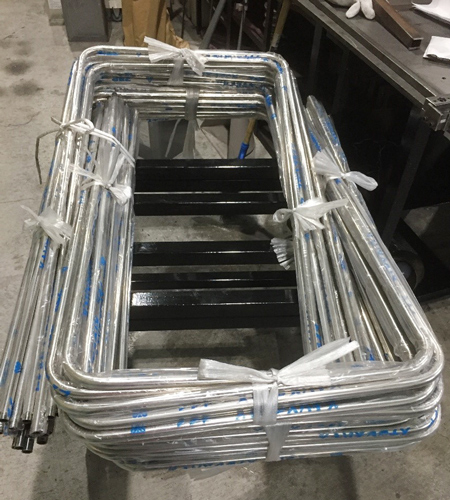 SUS304丸パイプ(#400)16x1.5のコの字曲げ加工(内50R)です。