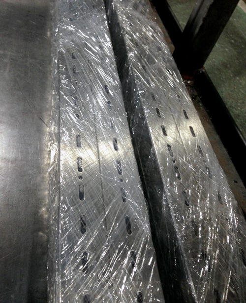 ステンレスのスリットパイプも対応致します。ロイヤルピッチ、11スタート50残しの別注対応。今回の納期は受注後4日でお届けしました。キズに注意し加工後ラップを巻きますが基本キズはノークレームでお願いします。